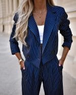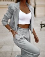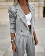 Refresh your wardrobe with our Women’s Spring Fashion Striped Suit, a perfect blend of casual and chic. This two-piece outfit features a stylish lapel cropped top with long sleeves and matching straight-leg pants. The classic striped pattern adds a sophisticated touch, while the comfortable fit ensures effortless style for work, outings, or relaxed gatherings.