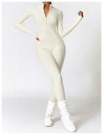 Stay cozy and stylish during your workouts with our Warm Zipper Long-Sleeved Jumpsuit, designed for yoga, fitness, and active lifestyles. This versatile bodysuit features a sleek zipper closure and breathable fabric, providing both comfort and functionality. The slim-fit design enhances your silhouette, while the long sleeves and full-length pants keep you warm and supported. Perfect for chilly gym sessions or outdoor activities.